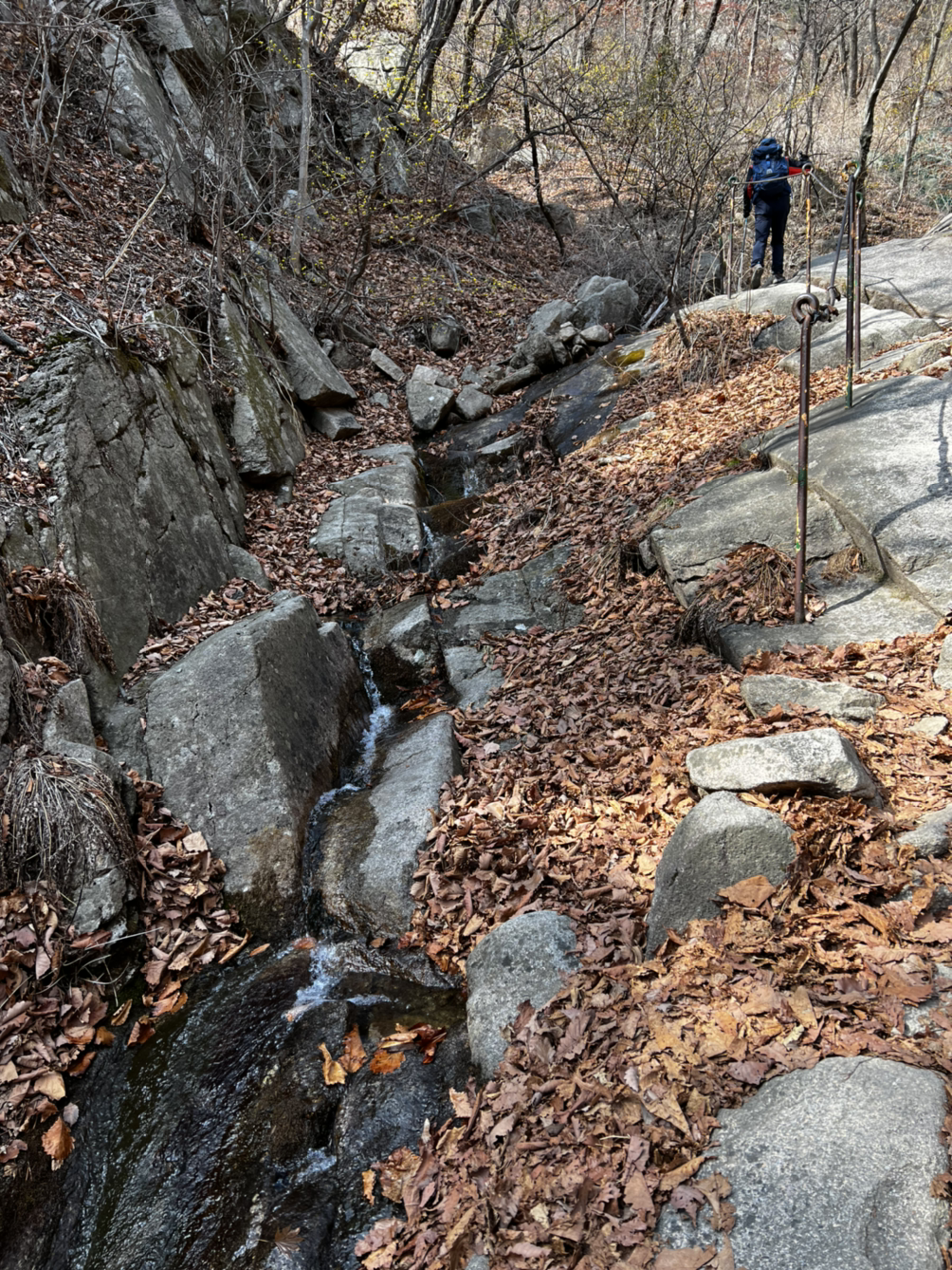 가파른 바윗길은 나무테크로드를 설치해 한 걸음씩 올라갈 수 있었다. 들숨에 한걸음 날숨에 한걸음 깊게 호흡하며 계단을 오르다 보니 어느새 대동문 성곽이 보인다.