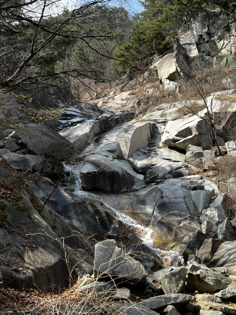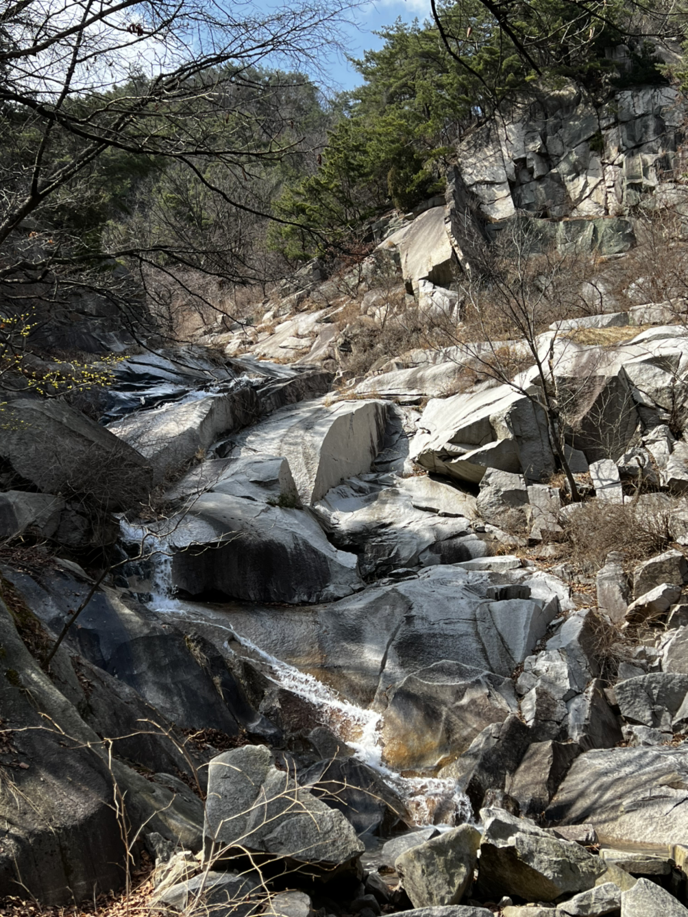 "물 한 모금 먹고 가지요?" 한 시간 가까이 오름세를 탔더니 목이 탔다. 능선으로 올라타야 한숨 돌릴 것 같다. 그나마 구천계곡 물소리를 들으며 걷는 길이기에 눈과 귀는 즐거웠다.