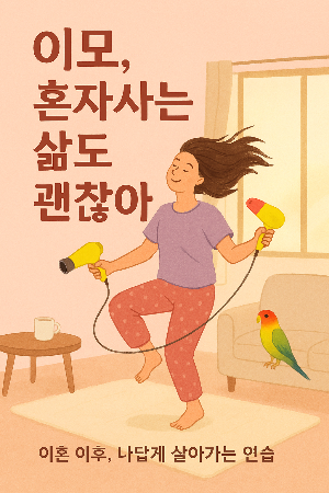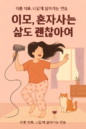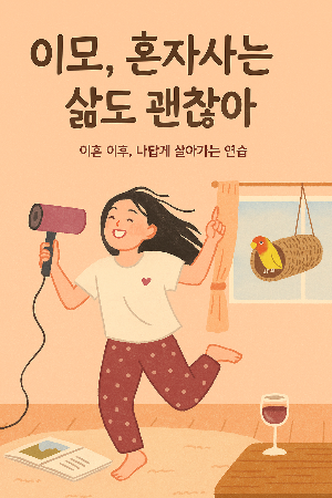 "브런치북을 연재하려고 해. 제목은 '이모, 혼자 사는 삶도 괜찮아여' 표지를 만들고 싶은데 도와줄래?"