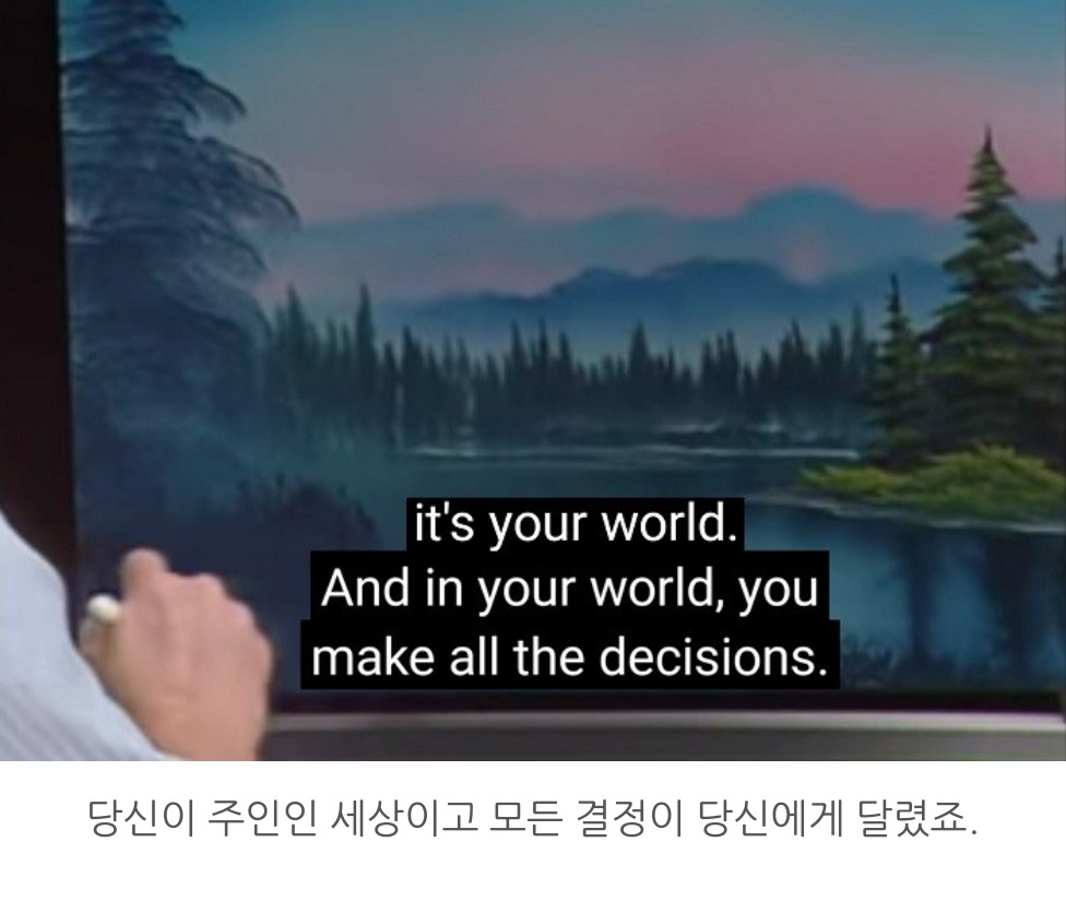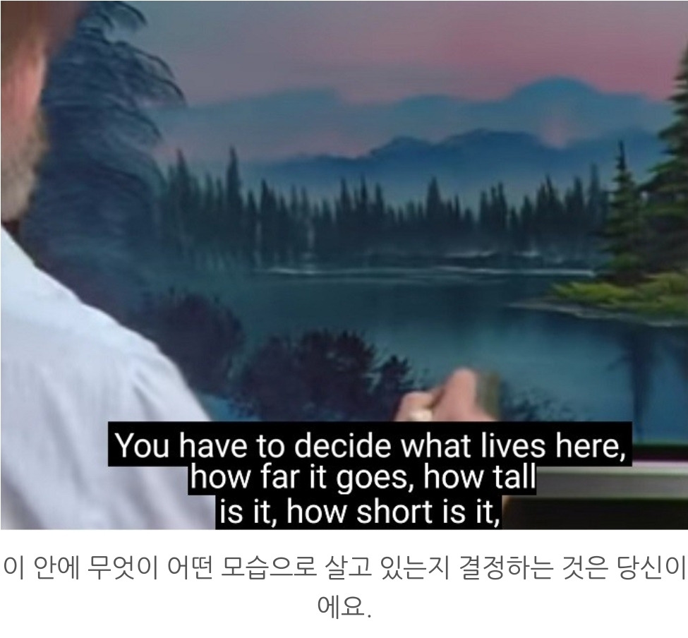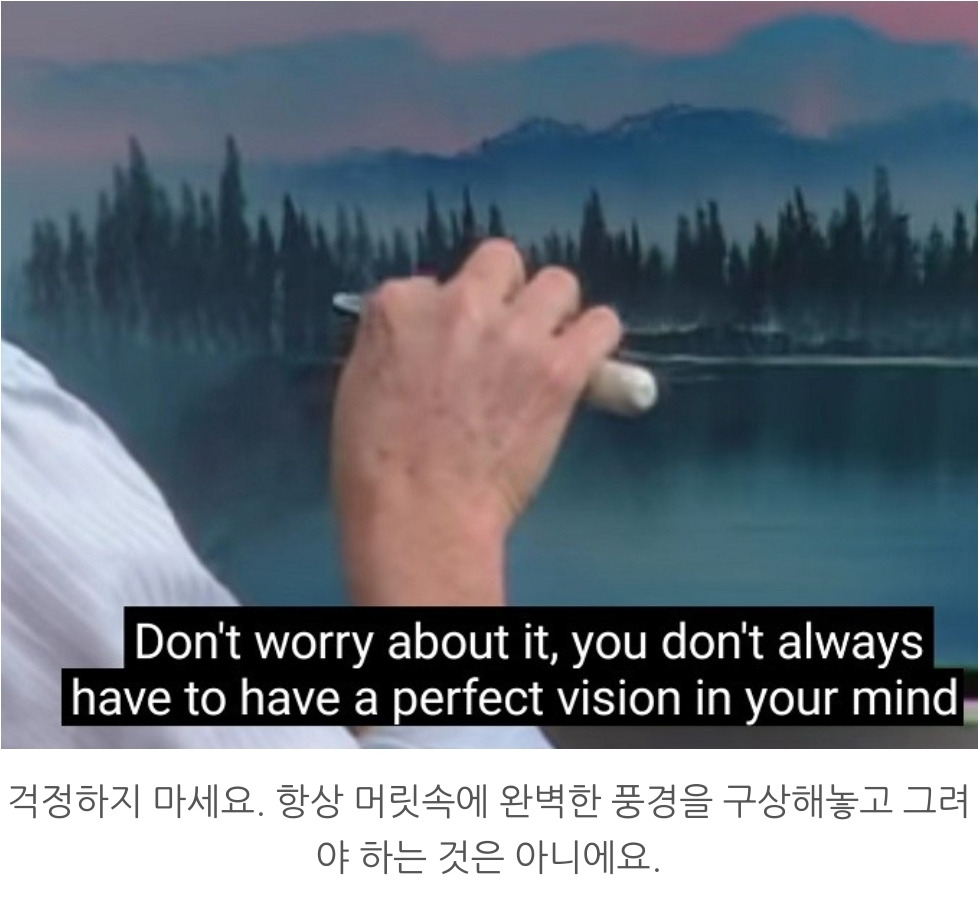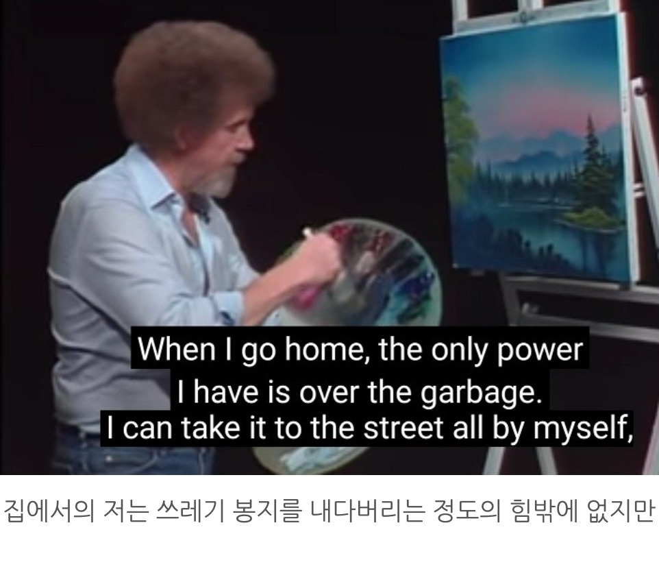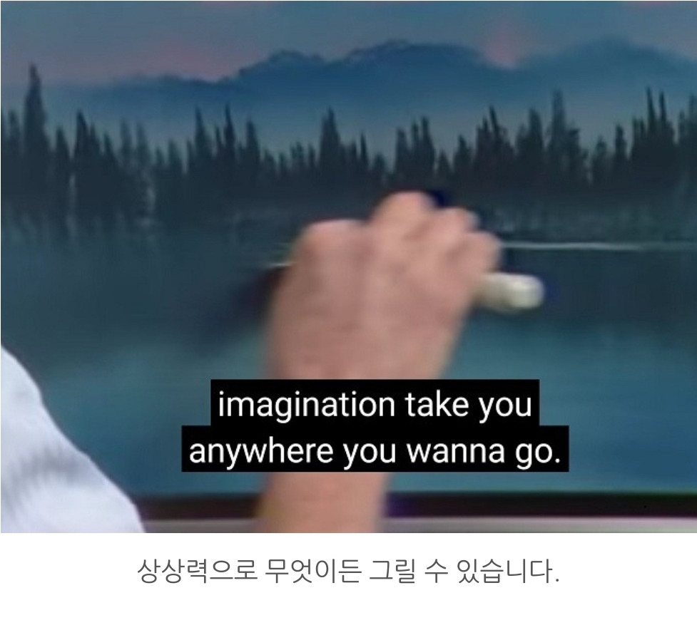 예전에는 아저씨의 신기한 솜씨에 빠져 붓질만 보느라 정신이 없었는데 이번에 자막과 다시 보니 느낌이 새로웠다. 아저씨가 그림 그리기의 즐거움 뿐만이 아니라 인생의 즐거움도 같이 가르치고 있다는 것을 느꼈다. 동네 친구와 차 한잔 하며 던지는 말처럼 잔잔하고 평화로운 목소리로 읊어주는 인생론이 그림만큼이나 감동적이었다.