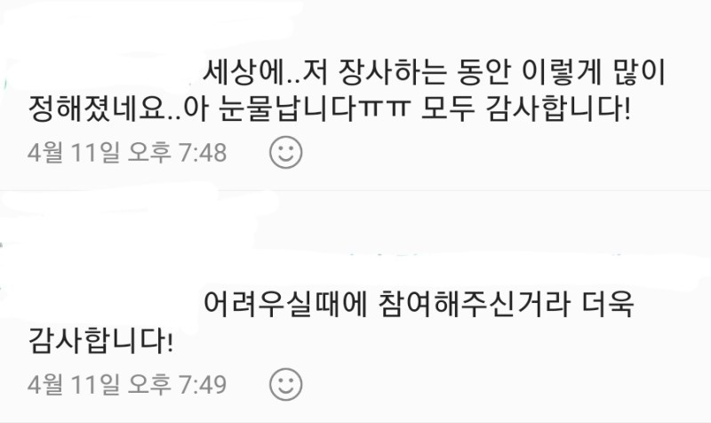 글을 보자마자 이럴 때일수록 매번 어려운 일 하는 지인에게 힘이 되어드려야겠다는 생각이 들었고 절대로 아이들을 실망시켜서는 안 되겠다는 결심이 생겼다.