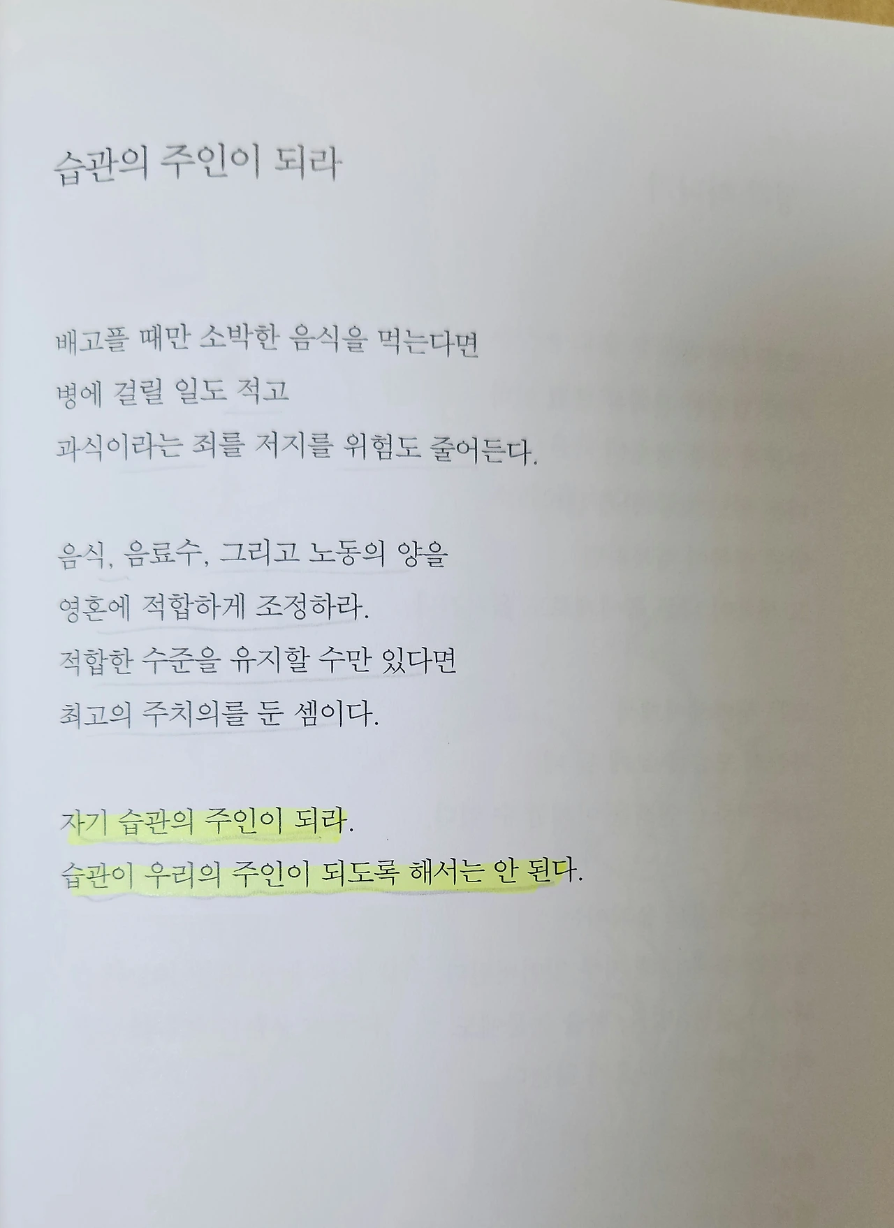 자기 습관의 주인이 되라.