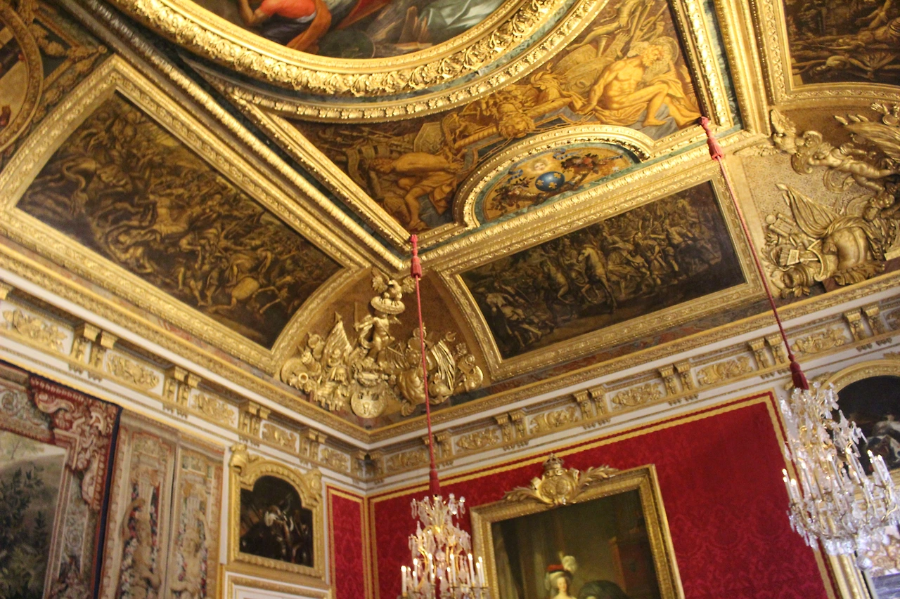 프랑스혁명 때, 궁전에 들어왔던 성난 군중들은 궁전의 여기저기에 상처를 남겼고, 베르사유 궁전은 지금도 보수 중이라고 했다. 사람들이 많이 있던 앞부분은 그래도 많이 보수한 것인지 흔적들이 보이지 않았는데, 뒤로 갈수록 천장의 그림들이나 벽등엔 중간중간 하얀 상처가 남아있었다.
