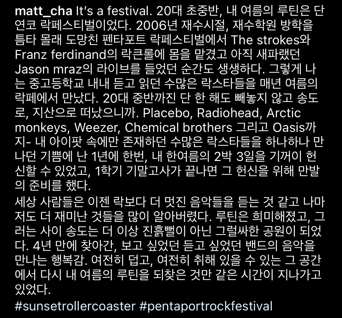 내가 경험한 마지막 음악 페스티벌은 2019년에 열린 펜타포트 락 페스티벌,