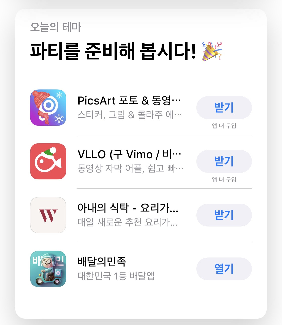 b. 앱스토어의 투데이 코너에서는 요렇게 파티 관련 앱들을 큐레이션