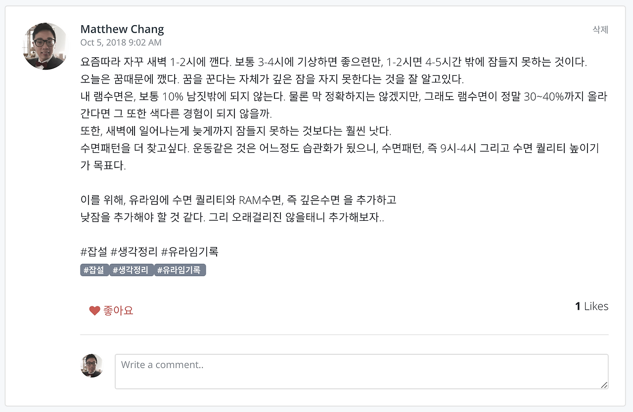 나중에는 정말, 지금의 SNS들 처럼 광고나 스팸, 가짜뉴스에 오염된 SNS가 아니라, 정말로 '자기관리'의 모든 컨텐츠를 어우르며 서로가 서로를 응원하고 돕는 플랫폼을 만들었으면 좋겠다.