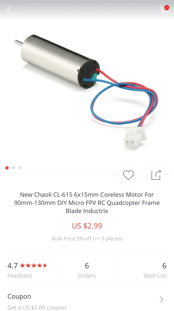 tinywhoop.com에서 Tiny Whoop 부품을 공급하기 시작한 이유 알리 익스프레스 발 모터 들도 소개되기 시작했습니다. 전에 소개한 Fast motor 급인데 성능과 수명은 동일합니다. 마음의 여유가 있으시면 알리 익스프레스에서 주문하고 느긋하게 기다려도 좋습니다.
