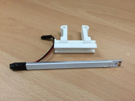 LED가 장착될 부분은 언더컷으로 설계해서 뒤에 양면테이프를 쓰면 튼튼하도록 설계했습니다. LED는 기체에 12V에 연결할 수 있도록 커넥터를 달고요.