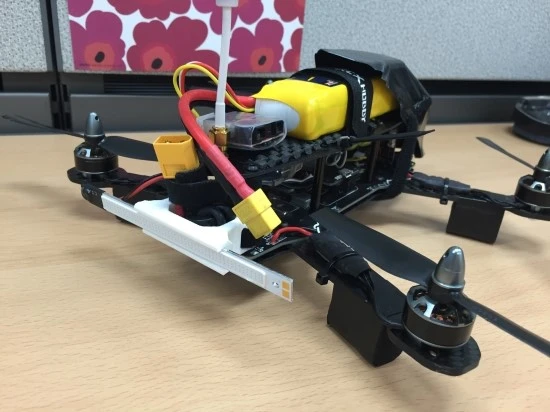 그래서 달아보기로 했습니다. 일단 기체에 어디에 달지 적당한 위치를 잡고 치수를 측정한 다음 도면을 그리고 3D 프린터로 출력합니다. 어떤 기체에도 적용할 수 있게 서포터 거리를 조정할 수 있습니다.
