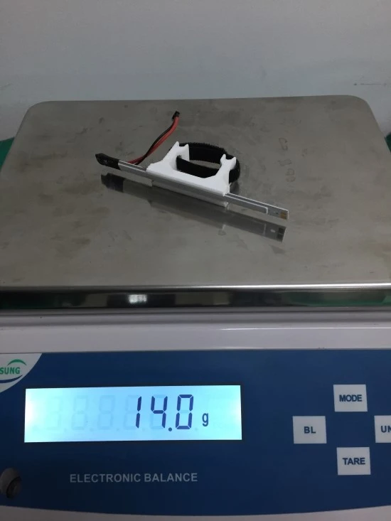 그리고 출력해 봅니다. LED가 히트싱크까지 달려있어 제법 무겁지만 전체 중량은 14g이네요.