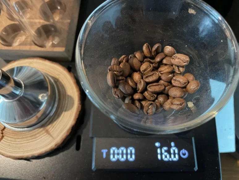 신맛이 도드라지지만 다른 깊은 맛이 신맛과 어울리는 커피였습니다. 이후로 커피는 16g으로 도징량을 높였습니다.