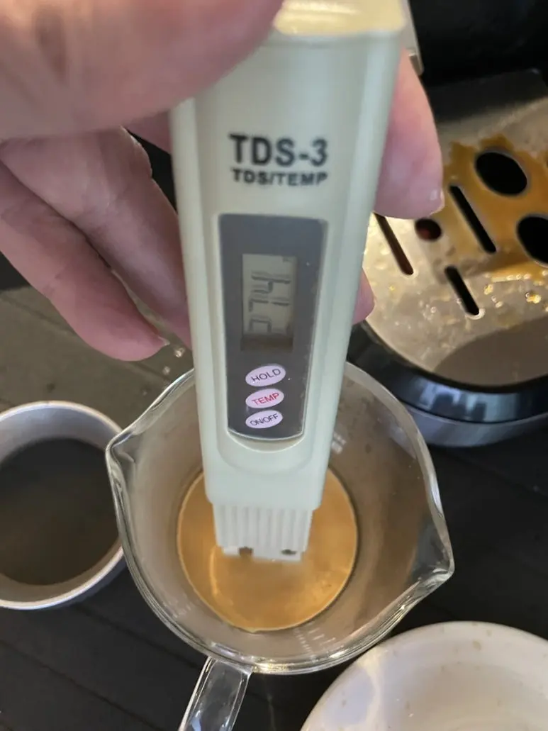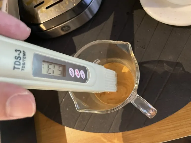 첫 잔의 TDS 값은 274 ppm입니다. 둘째 잔이 더 맛있으려면 이보다 높은 값이 나와야겠죠?