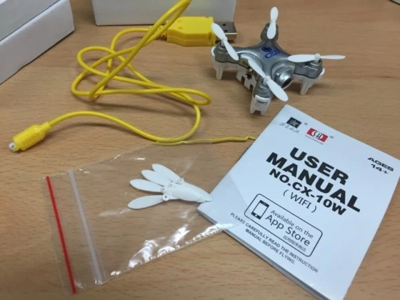 조종 앱을 QR code로 링크해 두었습니다. 앱스토어에 CX-10W로 쉽게 검색됩니다만 아무도 읽어보지 않는 매뉴얼에 소개된 아이패드 앱은 존재하지 않습니다. 아이폰용 앱으로 구동하면 되지만 터치 레버도 같이 커져 조종이 힘들어집니다.