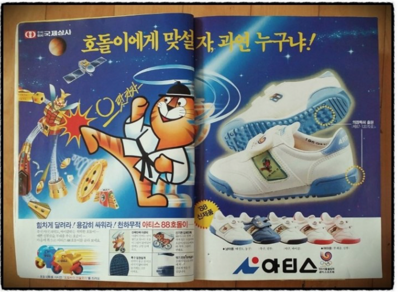 그때는 사실 나이키나 아디다스는 생각도 못했고, 아티스, 까발로, 슈퍼카미트, 월드컵, 타이거(오니츠카타이거 아닙니다) 5대천왕이 유명했던 시절. 그 중에 아티스는 최고였죠. 적극적인 캐릭터신발의 도입, 호돌이 버전은 초등, 아니 국민학생이던 저를 늘 설레이게 했습니다. 캐릭터 신발을 벗어날 나이의 마지막 신발이었죠.
