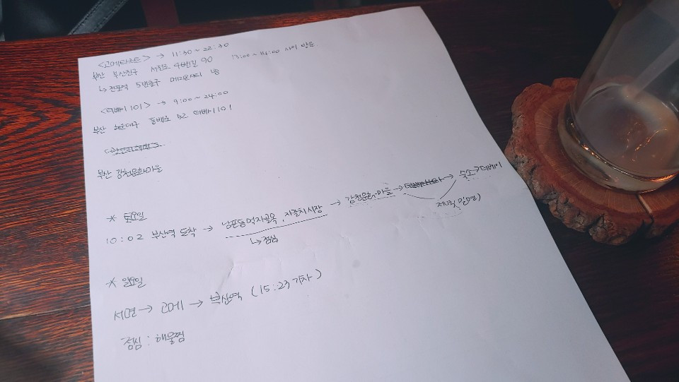 주문한 음료와 디저트가 나오고 우리는 열심히 부산여행에 관한 계획을 짰다. 별거 없어 보이지만, 나름대로 우리는 심오한 대화를 나눴다.