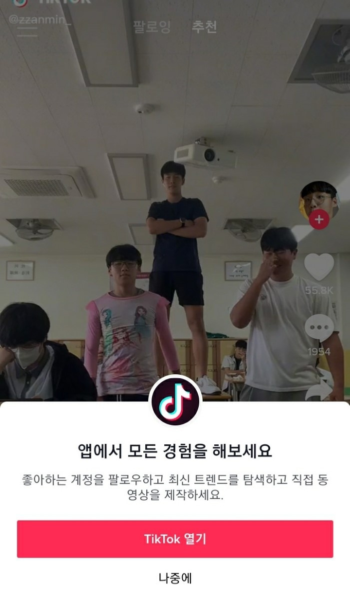 ▼ 카카오내비는 다운로드 아이콘만 달랑 있다. 내비니까, 웹으로 보겠느냐만.. 아무튼 메인카피까지 굉장히 심플하다. 틱톡도 [TikTok 열기], [나중에] 버튼 문구가 신선하긴 하다. 그런데 틱톡 앱도 없는 내 눈엔 [틱톡 열기] 문구가 살짝 당황스럽다. 틱톡 앱을 이미 사용하는 유저에게 해당하는 문구 같다. 헤드카피가 '앱에서 모든 경험을 해보세요'니까 이를 활용해서 다른 대안을 생각해 보는 것도 좋지 않을까?
