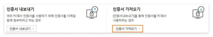 일반적으로 ‘가져오기’를 많이 쓰는 경우는 은행이다. 인증서 [가져오기/내보내기]가 실과 바늘처럼 같이 다닌다. 아래 예에서는 인증서 [이동 / 복사]의 개념을 [가져오기 / 내보내기]로 치환했다. 위 경우에서처럼 인증서를 외부에서 가져오는 거라면 ‘불러오기’를 쓰지 않은 이유는 뭘까?