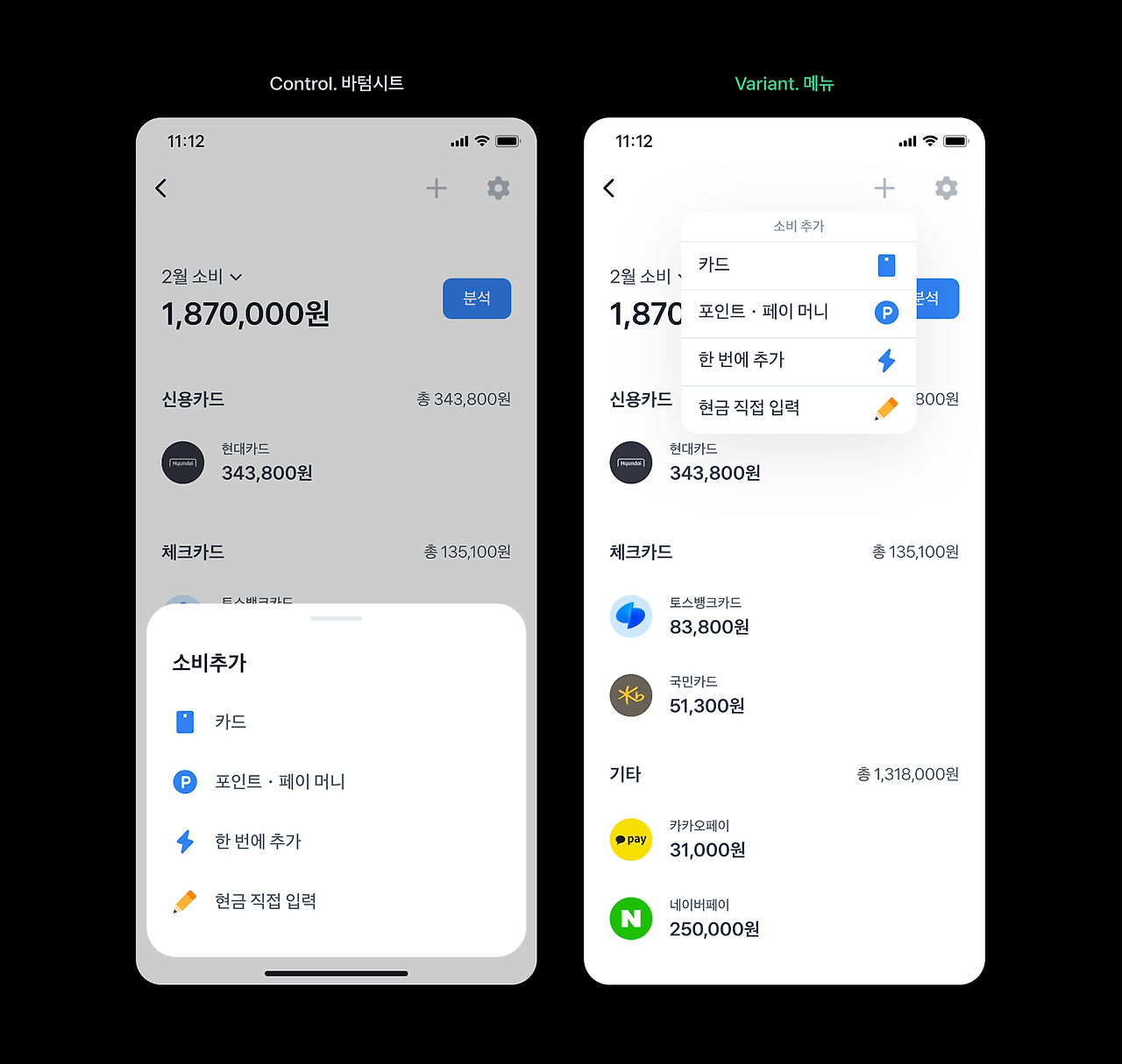 그동안 토스에는 모든 화면에서 셀렉터가 필요할 때 위와 같은 방법을 사용했었어요. 그 방법을 쓴 이유 중 하나는 컴포넌트 종류의 한계도 포함되어 있었어요. 셀렉터 역할을 할 컴포넌트가 바텀시트밖에 없었던 것이죠.