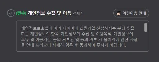 UX라이팅 할 때 '어떻게 하면 더 쉽게 쓸까'를 고민하기 마련이다. 무조건 쉽게 쓰는 걸 지향하는 바는 아니지만, 되도록 쉽게 쓰려고 노력한다. 그중 하나가 이용약관에 있는 '개인정보 이용·동의' 화면이다. 현재 진행 중인 프로젝트 타깃이 미성년이다 보니 '아이들은 과연 이걸 알겠나' 싶은 구간이 꽤 눈에 밟혔다. 그래도 법적인 영역이니 웬만하면 손대지 않는 편을 선택하는 게 옳지만, 한편으론 호기심이 생겼다. 누가 이것 좀 쉽게 쓰려고 노력이나 해 봤을까. 아.니.나.다.를.까. 역시 대기업은 달랐다. 네이버와 카카오에서 프라이버시 정책을 '어린이용'으로 신경 쓰고 있다는 사실을 처음으로 알게 됐다.