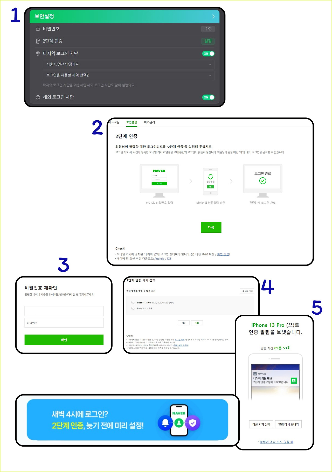 깊게 볼 요량은 아니었기에 정말 쓱 봤지만, 2단계 인증 플로우의 문구들은 하나같이 딱딱하고, 바늘 하나 안 들어갈 듯한 느낌이다. 두드러지는 차이가 있다면, 일사천리로 설정 완료된 구글과 달리 가타부타 인증 알림이 오지 않아 나를 중도에 포기하게 만든 네이버의 모습이랄까. 그래도 네이버.. 2단계 인증 배너까지 만든 걸 보면 나름 신경은 쓰고 있는 거겠지.