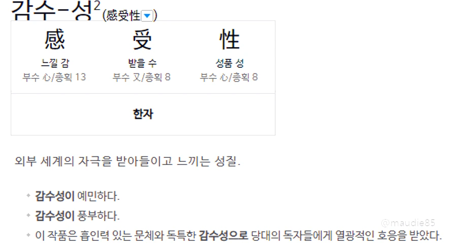 외부 세계의 자극을 받아들이고 느끼는 성질
