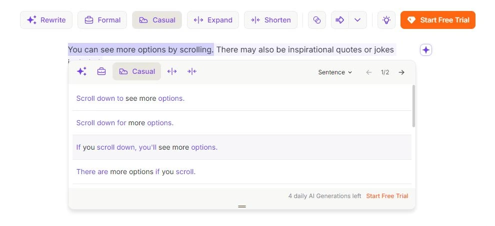 나는 국문을 메인으로 쓰는 UX라이터지만, 영문 UX라이팅에도 관심이 있다. 그래머리를 종종 쓰는 편인데 이번 강의에서 알게 된 wordtune은 색다른 기능을 제공해서 아주 흥미로웠다.