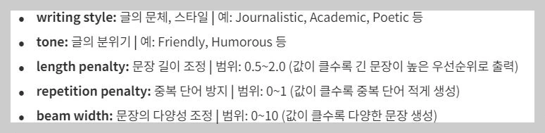 예) 사용자가 "이 주제에 대한 소개를 써줘"라고 하면 AI가 소개 문장을 자동으로 생성