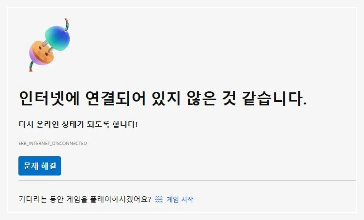 인터넷에 연결되지 않았어요.