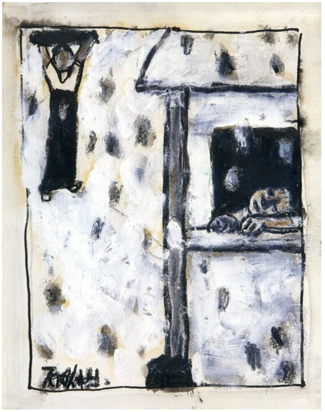 이중섭 <돌아오지 않는 강>, 1956년, 종이에 연필과 유채
