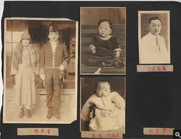 사진첩의 왼쪽 페이지에는 나혜석과 남편 김우영 부부가 함께 찍은 사진이 눈에 들어온다. 김우영은 일본 외무성의 고위 공무원이었으며, 이 사진은 그가 만주 부영사로 발령받아 떠나기 전에 촬영된 것으로 추정된다. 사진 오른쪽에는 장녀 김나열 장남 김선, 그리고 남편 김우영의 독사진이 붙어 있다. 비어있는 자리는 본인의 사진이 붙어 있는 자리였는데 사진은 떨어져 나가고 이름만 붙어 있는 상태이다.