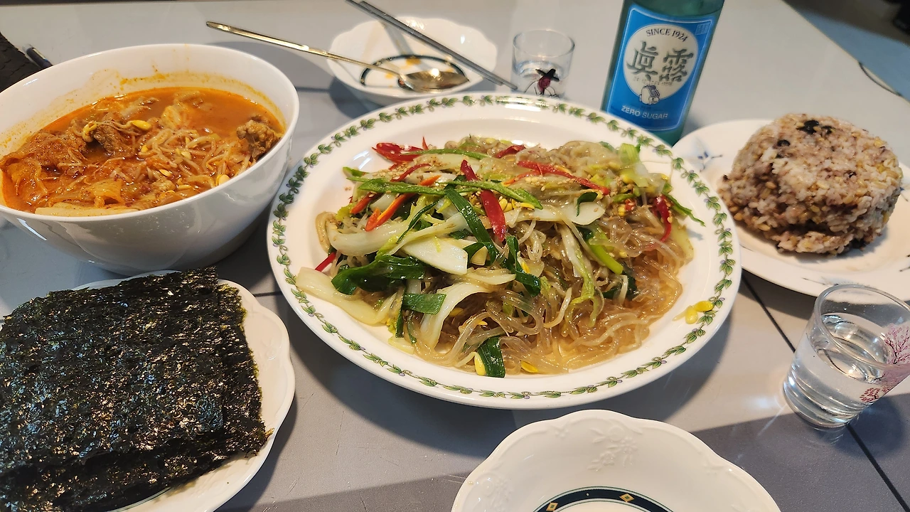 그러거나 말거나 저는 저녁을 먹습니다. 콩나물알배추잡채와 김치찌개에 소주 한 잔을 곁들입니다. 이게 행복이라는 개념을 현실로 검증하기 때문이죠.