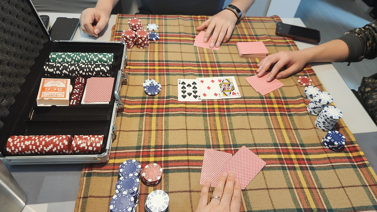 좀 쉬다가 이른 저녁을 먹고 저와 을녀와 아들이 텍사스 홀덤을 밤11시 반까지 했습니다. 을녀는 예상대로 호구처럼 보였는데, 아들이 너무 잘 하는 겁니다.