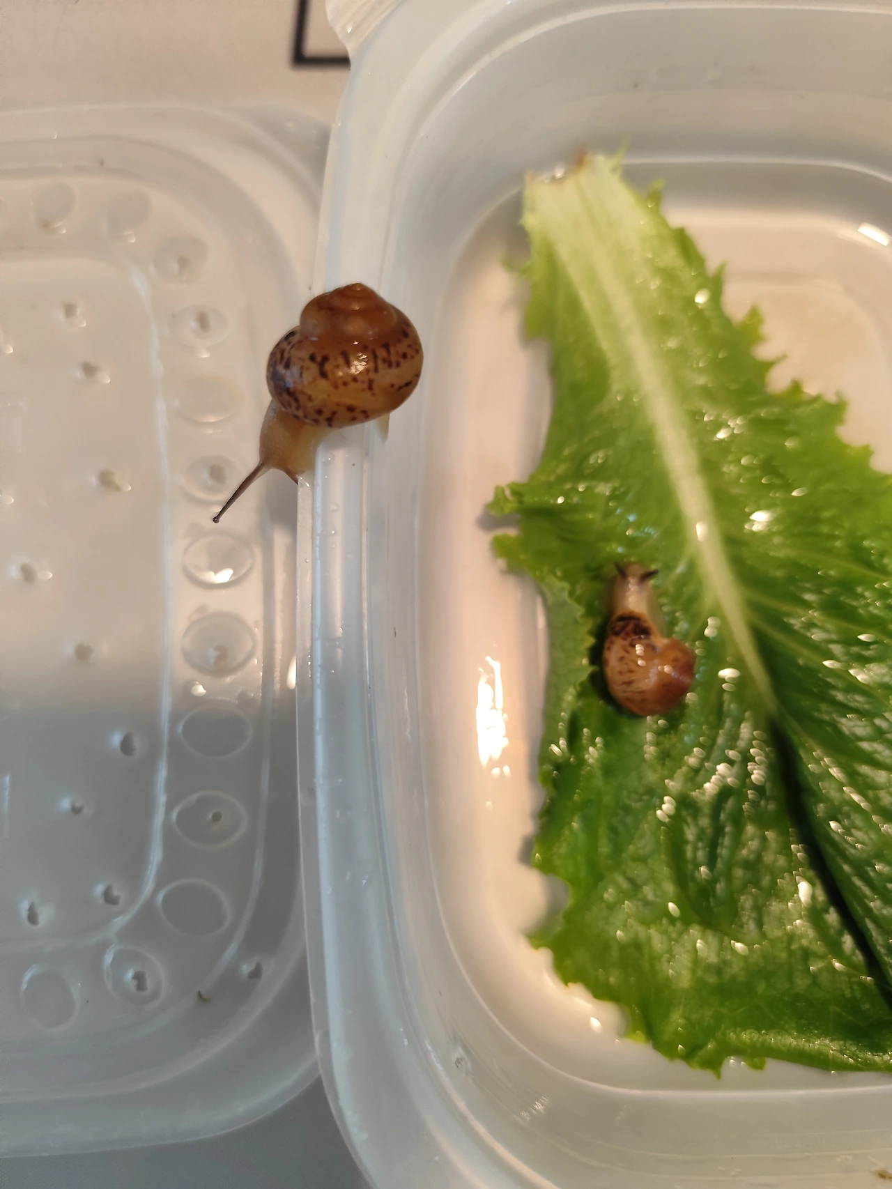 찾아보니 달팽이의 뇌세포가 약 2만 개 정도 된다고 하네요. 이 작은 몸뚱아리 어딘가에 뇌세포가 기능하고 있다는 것도 신기한데, 키우면서 가만히 들여다 보니 두 녀석이 성격이 너무 다릅니다.
