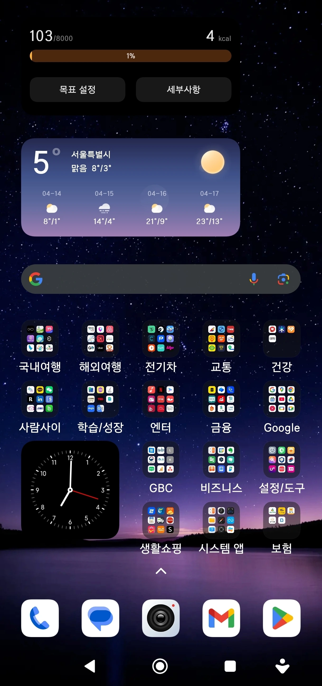 휴대폰 첫 화면 가장 윗단에 걸음수를 보여주는 위젯을 설치했습니다. 어플을 클릭하고 들어가지 않아도 하루에 얼마나 걸었는지를 가시화하기 위해서죠.