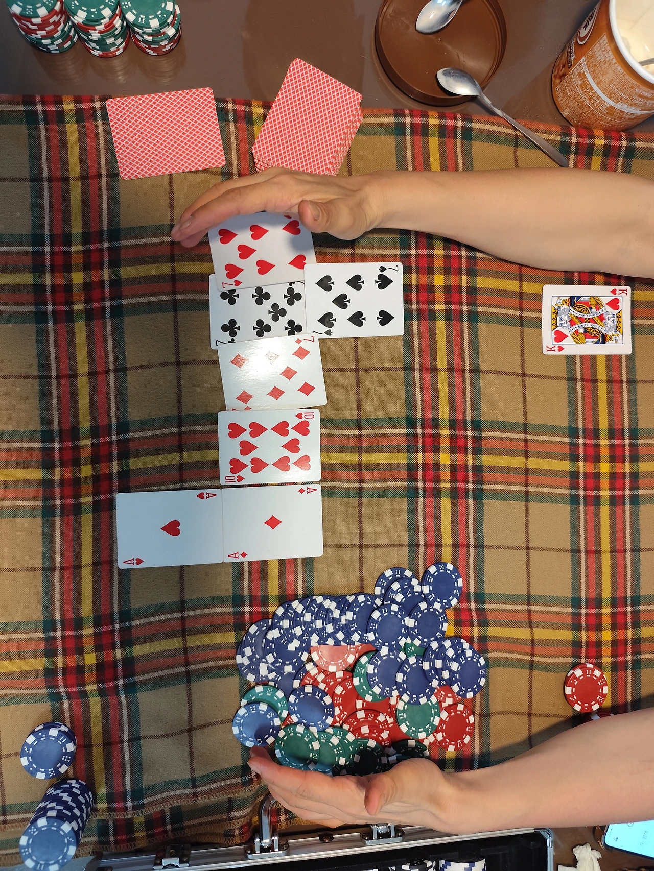 모처럼 아들이 집에 와서 텍사스 홀덤을 함께 했습니다.