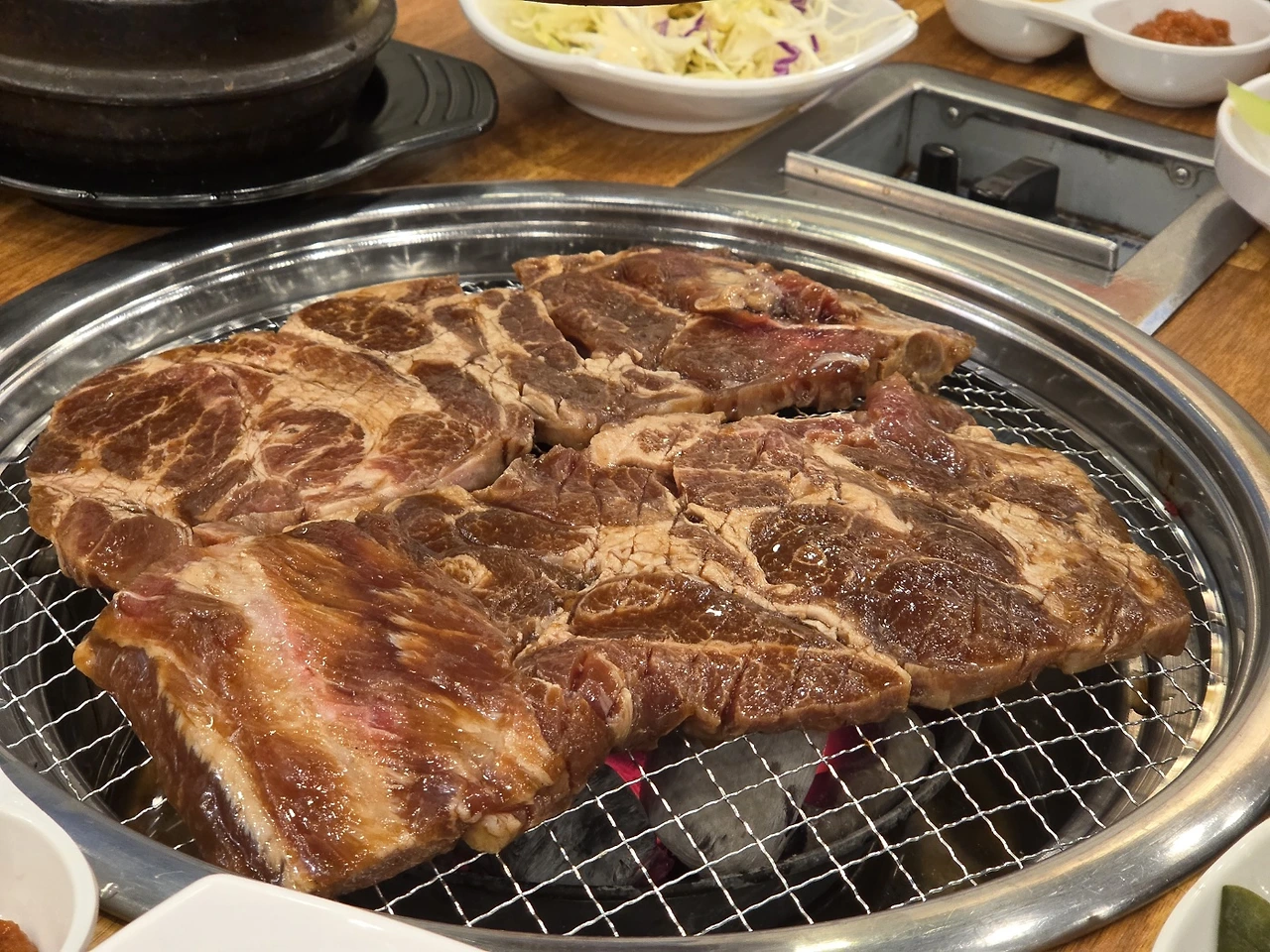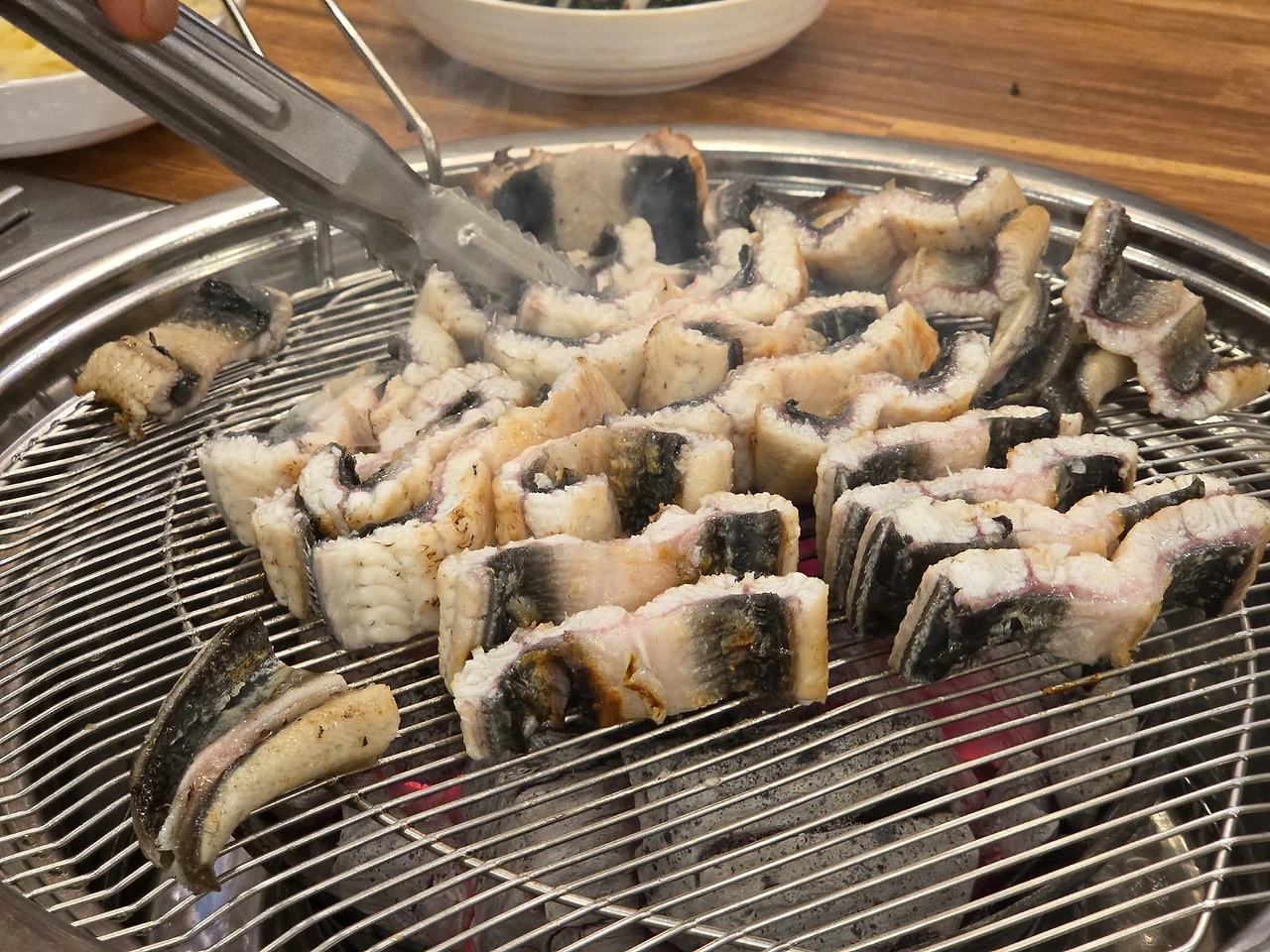 우선 장어 2마리에, 생갈비 2인분이 다 구어지자마자 장어 2마리와 생갈비 2인분을 바로 추가하는 주문을 거니, 얼굴부터 마비가 시작되어 금방 온 몸이 굳어버리더군요. ㅋㅋ