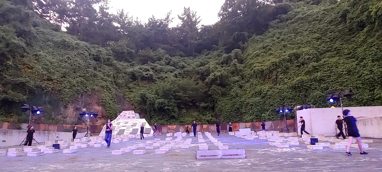 상암의 문화비축기지 야외극장에서 가을 바람이 선선하게 부는 가운데 2시간 동안의 무언극이 시작됩니다.