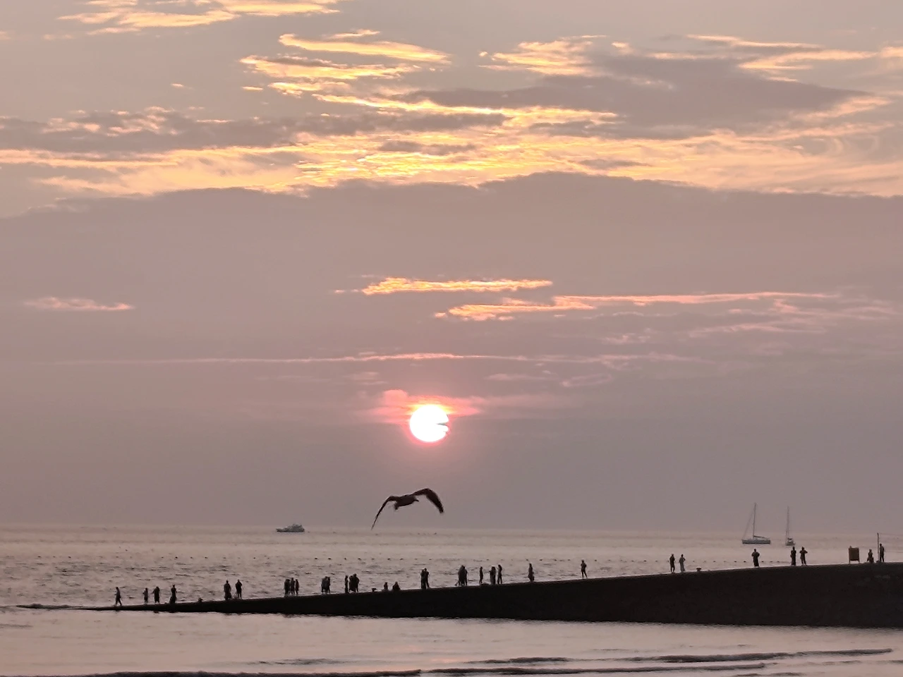 바이올린 버스킹을 하는 멋진 젊은이 덕에 연주를 들으면서 일몰을 보았습니다.