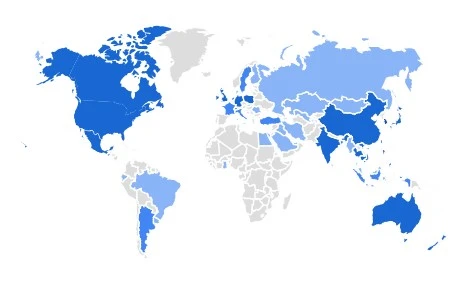 저희 회사 홈페이지를 방문하는 고객들의 세계분포를 보면, 경영자들이 가장 신뢰하는 경영혁신 기법 1위인 '벤치마킹'에 대한 관심도를 알 수 있습니다.