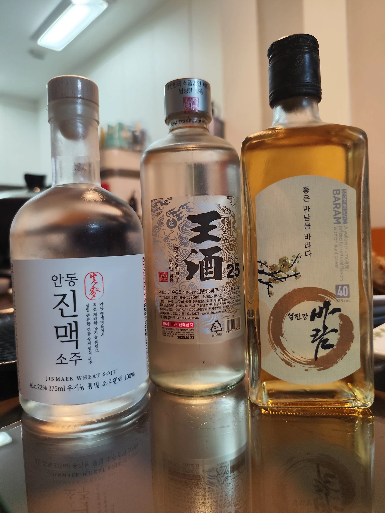 오늘 함께한 우리 전통주는 진맥소주, 왕주, 섬진강 바람입니다. 식전주로 마신 22도의 진맥소주는 우리 가족 입맛에는 심심했습니다. 도수도 너무 낮고 향도 너무 약했다고 할까요 . 너무도 빨리 우리 삼부자의 희생양이 되었습니다.