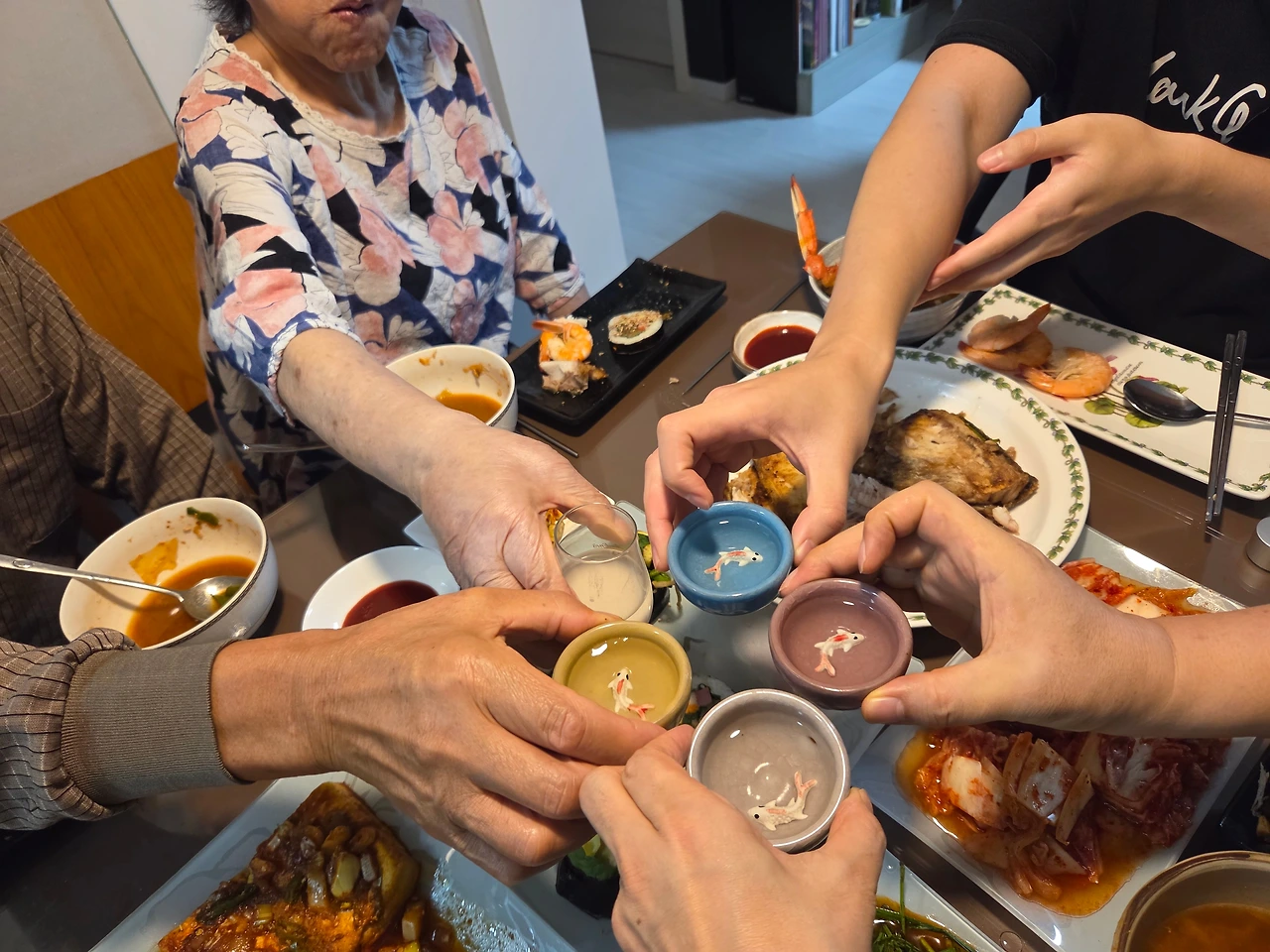 삼대가 모여 저녁식사를 함께 했습니다.