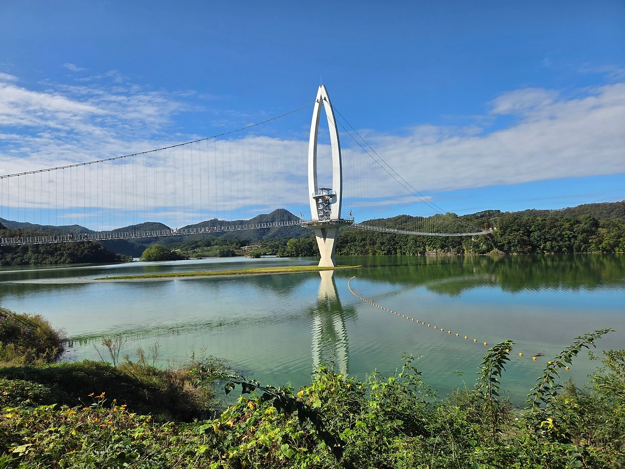 옥정호 출렁다리 앞에서 호수 보며 잠들고 깨니 사람들이 또 바글바글하더군요. 서둘러 옥정호 수변데크를 걸었습니다.