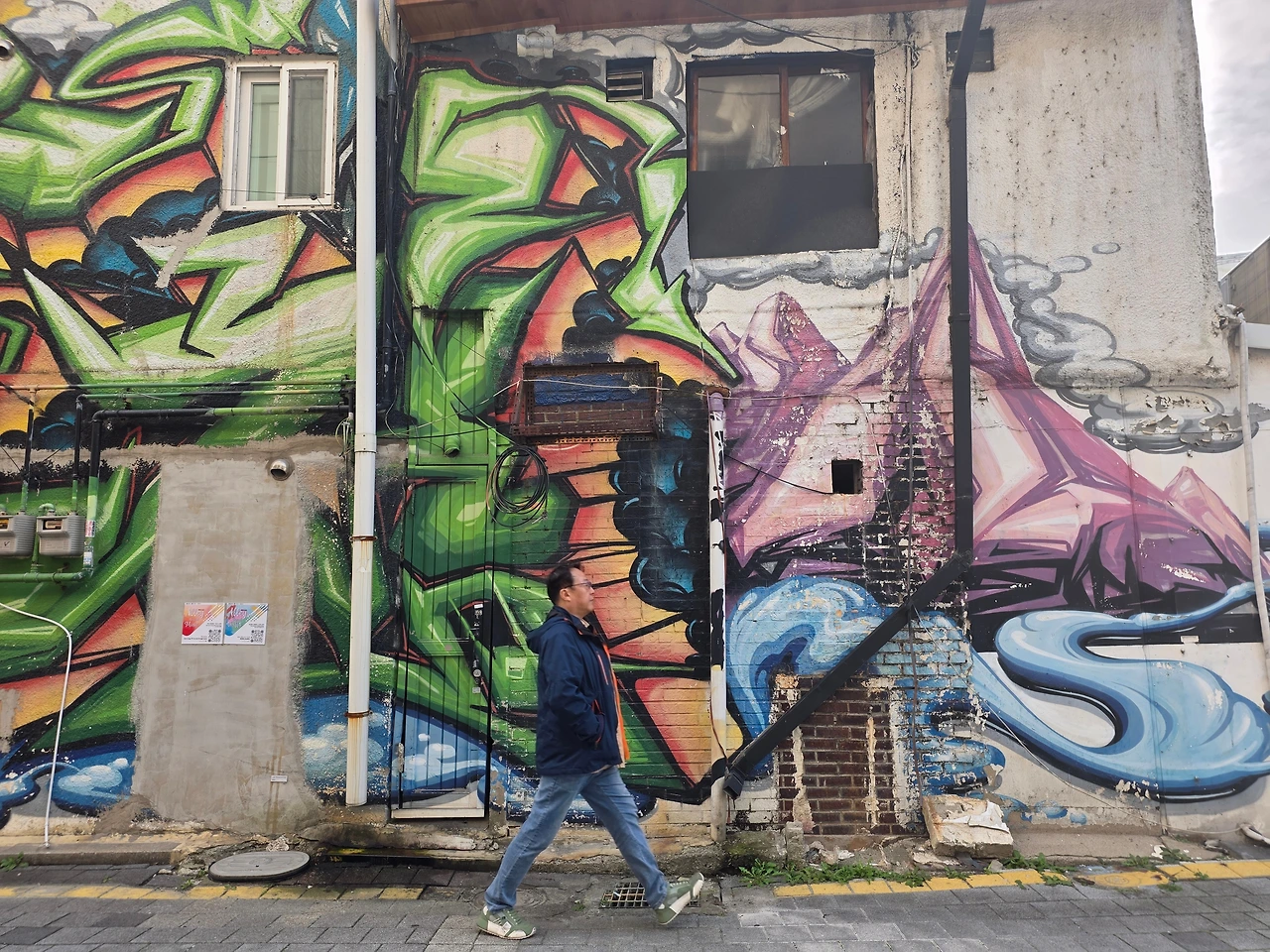 미군 부대가 있는 캠프 보산 주위의 외국인 관광 특구로 차를 몰았습니다. 일요일인데 마치 고담 시와 같이 을씨년스러웠습니다. 마을을 지키던 아이언맨도 역모를 일으켰는지 목이 날아가 있더군요. 그나마 제가 좋아하는 그래피티가 많아서, 인위적이긴 했지만 둘러보는 재미는 있었습니다.