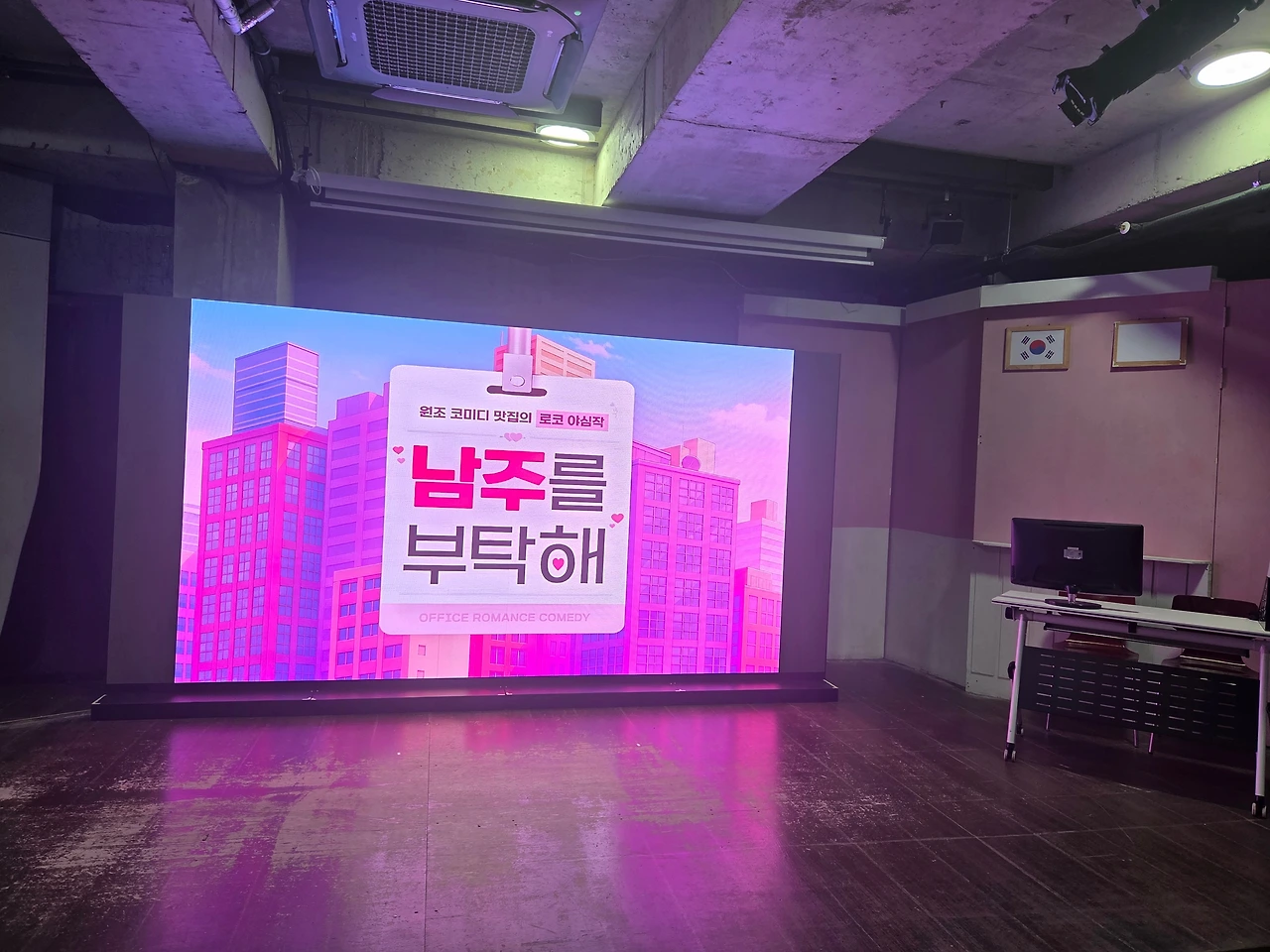 홍보실에 막 취업한 여주인공 남주를 둘러싸고 벌어지는 상황들마다 관객들의 투표나 참여가 개입되는 열린 무대입니다.
