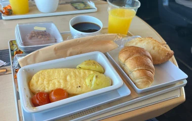 조식이 제공됩니다. 비행기 요금 받더니 비행기 수준의 서비스가 제공되네요. 호텔 조식을 먹고 열차에 오른 저는 커피만 한 잔 달래서, 따뜻한 커피를 홀짝이며 창 밖으로 눈길을 돌립니다.