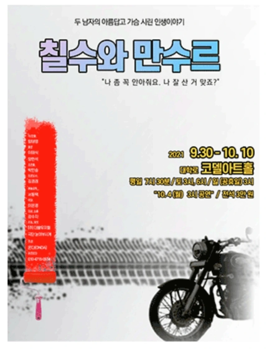 건설현장의 작업소장 칠수와 인부 만수의 이야기를 통해 하루하루를 충실하게 열심히 살아가는 우리네에 대한 긍정과 위로를 건네는 정극입니다.
