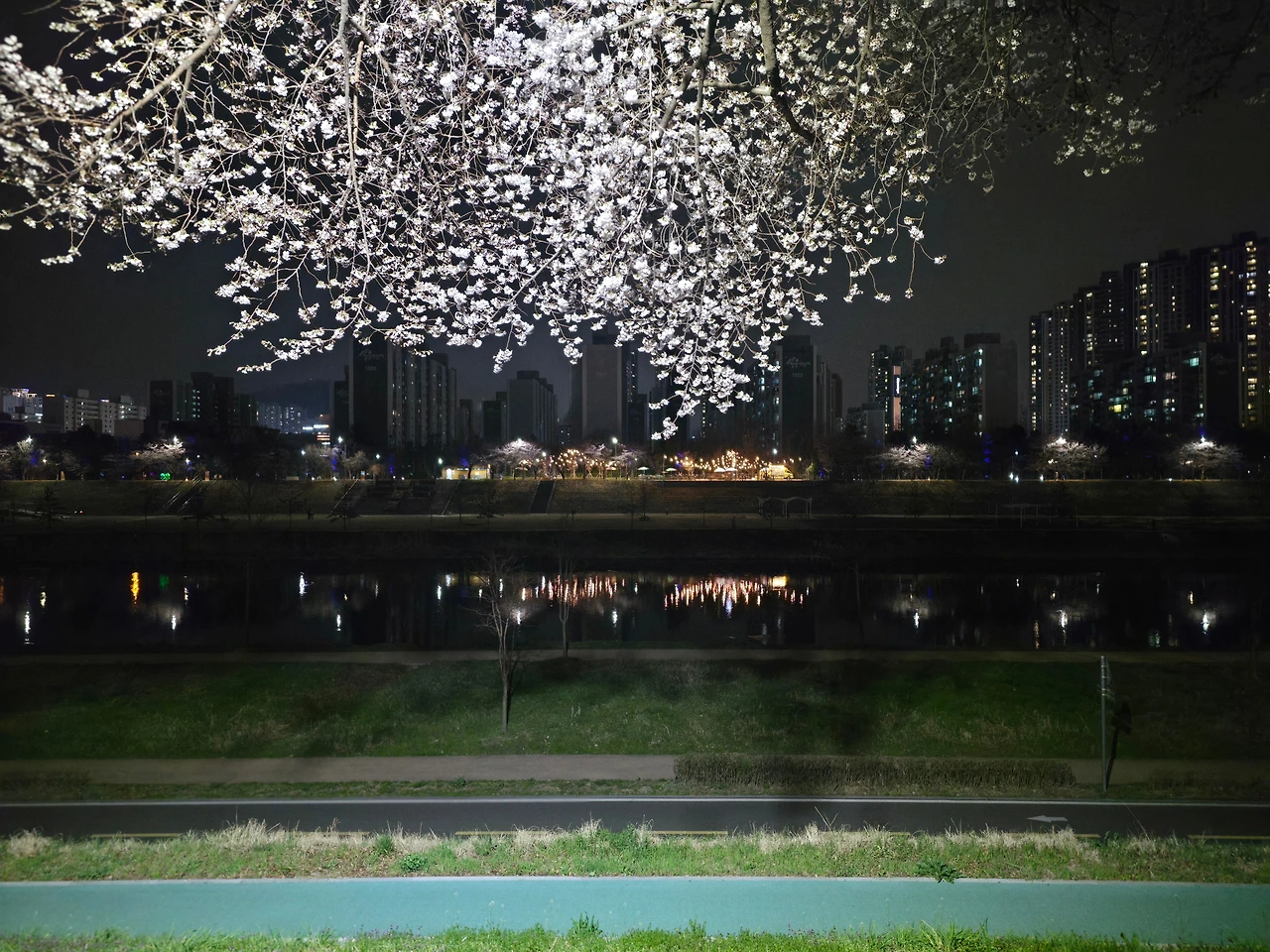 친구와 지인들이 전해주는 봄꽃 개화소식에 저녁을 먹고 둔치로 내려섰습니다.