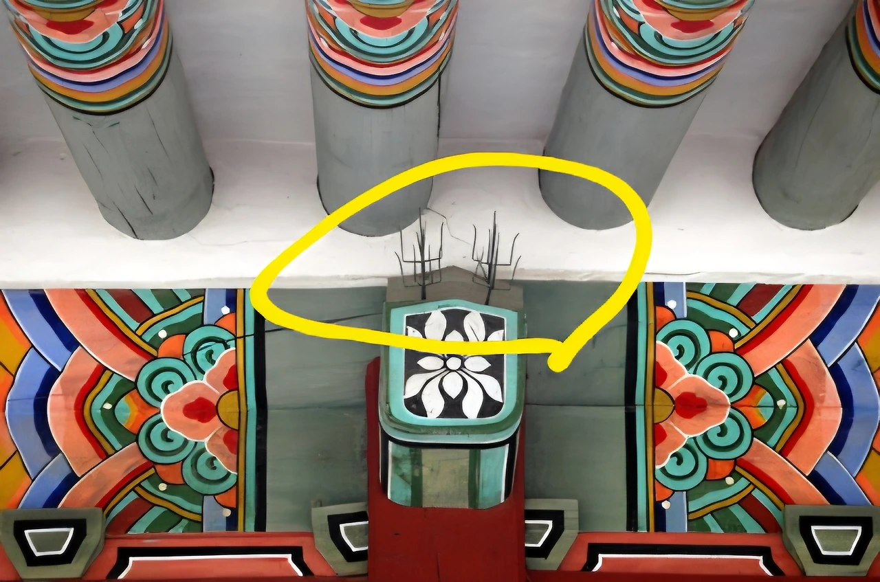 새가 둥지를 틀면 알을 낳게되고, 그러면 뱀이 찾아오기 마련이겠죠? 뱀은 둥지에 든 알과 새끼를 먹어치웁니다. 지엄한 궐내에서 살생이 벌어지는 것입니다. 게다가 새 똥은 강한 산성이라 단청과 처마의 목재를 쉽게 손상시킵니다.