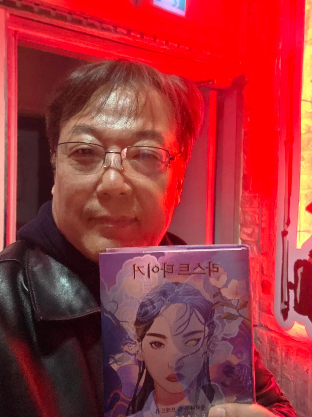 그 줄리아 류가 할아버지의 유언을 바탕으로 환타지 소설을 썼지 뭡니까. 전 세계 7개국에서 출간이 확정된 작품이지요. 도을의 작품이 전 우주에서 출간을 기다리고 있는 것에 비하면 겨우 지구 안의 일이긴 하지만 우리 K콘텐츠가 다시 한 번 미국에서 주목을 받아 세계로 그 영향력이 번져 간다는 사실에 기분이 좋아져서 이자까야 안에서 책을 안고 쎌카까지 찍었지 뭡니까. ㅎ