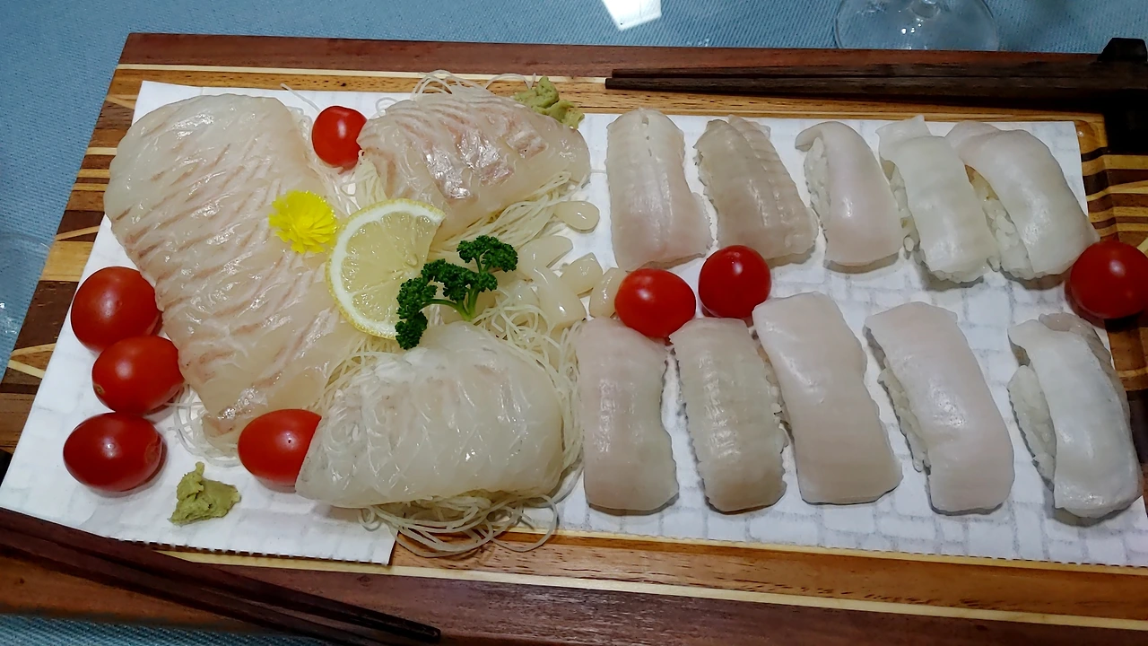 호주에서 보내 온 스시트레이에 광어초밥과 광어회를 기깔나게 깔고, 스페인에서 수입한 라스 반데라스 와인을 땄습니다.